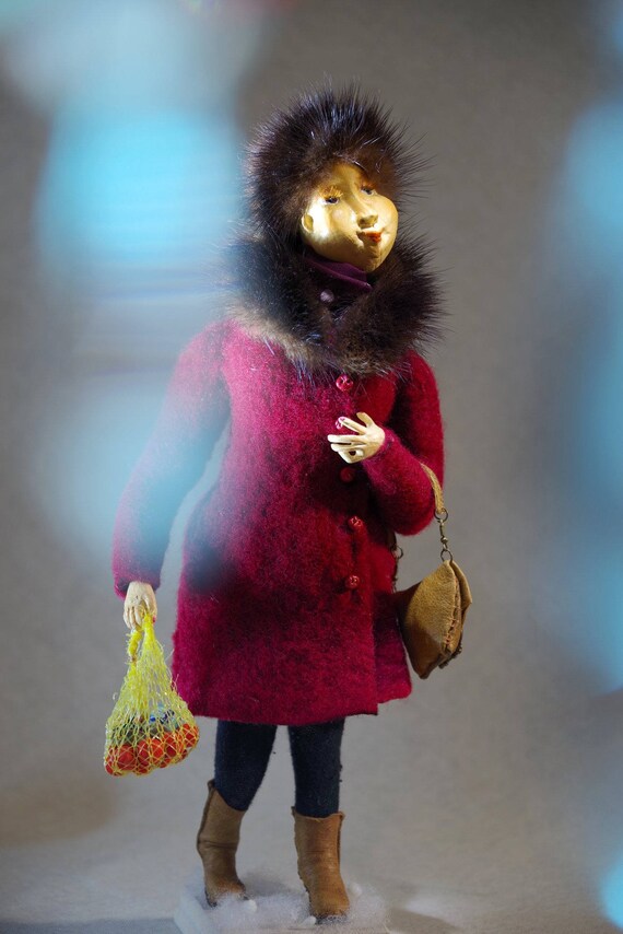Art Doll Woman With Orange Paper Clay Ooak Home Doll Designer Etsy