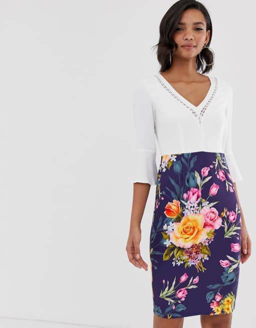 Paper Dolls Navy Floral Colour Block Bodycon Dress Shopperboard