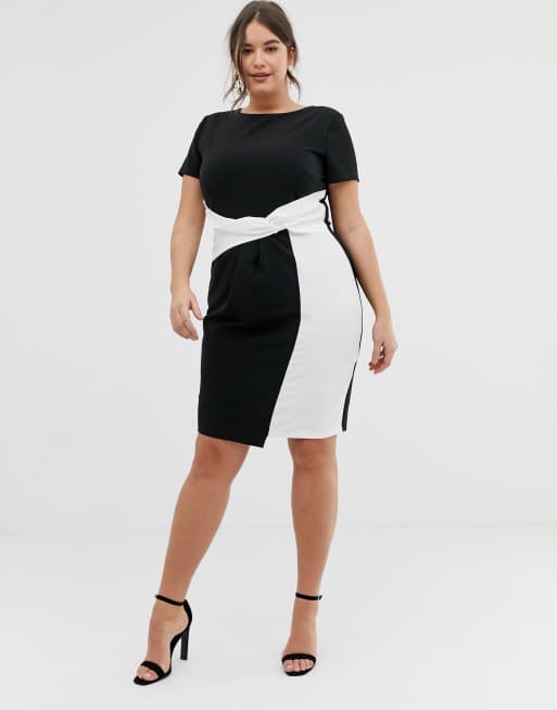 Paper Dolls Plus Bodycon Midi Dress In Colour Block With Twisted