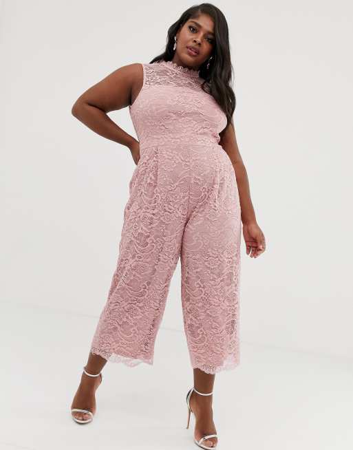 Paper Dolls Plus Allover Lace Culotte Jumpsuit In Blush Asos