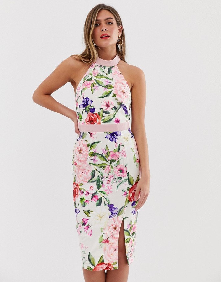 Paper Dolls High Neck Midi Pencil Dress In Floral Print Shopstyle