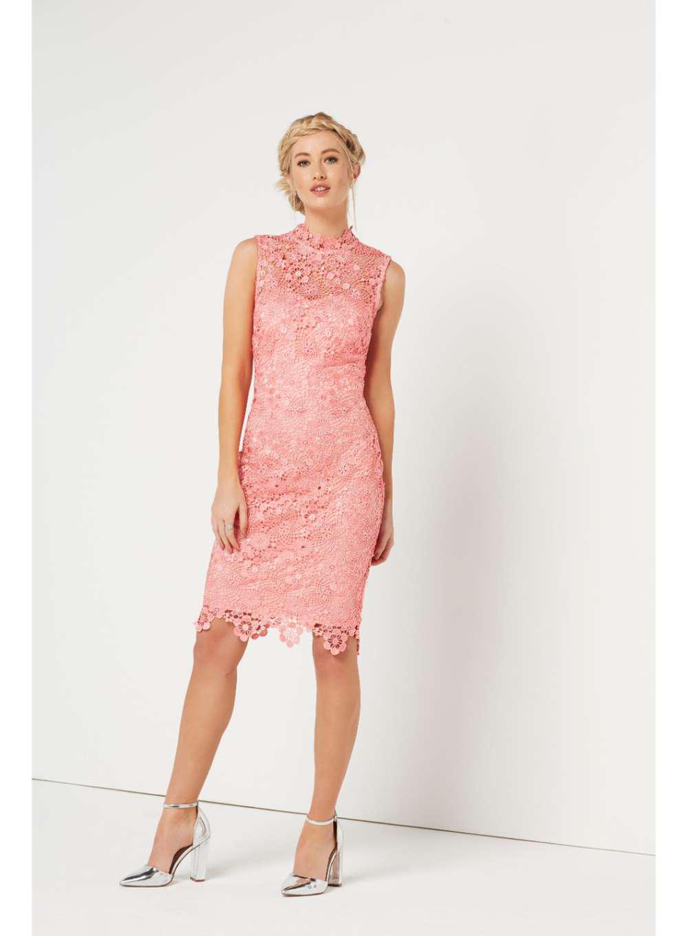 Paper Dolls Tall High Neck Floral Crochet Lace Pencil Dress Pg6o68