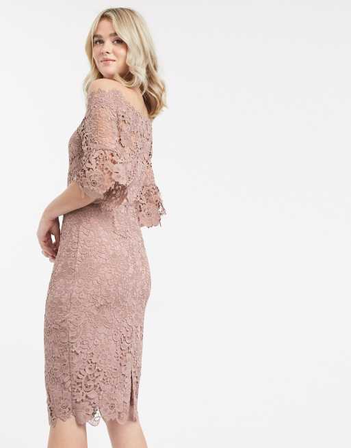Paper Dolls Pink Floral Crochet Lace Bardot Pencil Dress Pink Uk